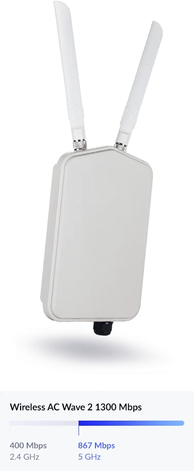 Wi-Fi AC1300 Wave 2 : Offre des débits combinés allant jusqu'à 1,3 Gbit/s, répartis sur les bandes 2,4 GHz et 5 GHz, assurant une couverture et des performances optimales.